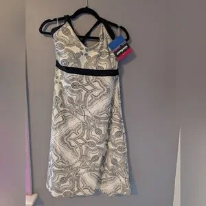 Step out in style with this elegant black and white halter dress. Perfect for any occasion, this dress combines comfort with a chic design. The intricate pattern adds a touch of sophistication.