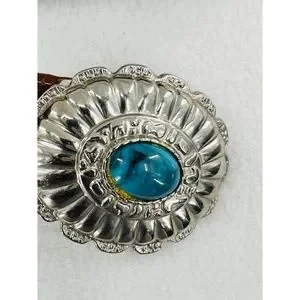 Brown Leather Belt w/ Silver Belt Buckle with Faux Gem.