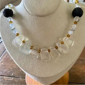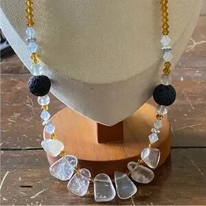 Natural quartz necklace with natural coal beads