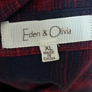 Eden & Olivia Red & Navy Plaid Long Sleeve Button-Down Flannel Shirt NWOT XL