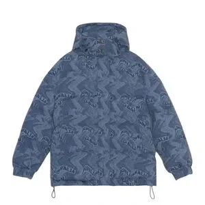 Ahluwalia x Ganni NWT Printed Denim Funnel Neck Puffer Jacket in Sz XS