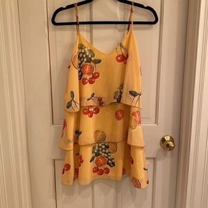 Show Me Your Mumu Suarez Ruffle Dress in Fruit Basket Size small. Great condition! Tiny spot under one of the ruffles that you can’t really see.