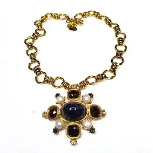 GERARD YOSCA Vintage Gold Byzantine Maltese Cross Glass Cabochon Necklace