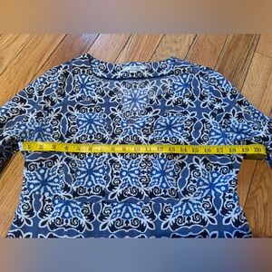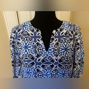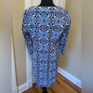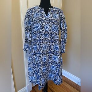 Boden 100% Linen Shift dress, women’s size 12R. Blue/White all over geometric pattern. EUC no rips, holes, stains or odors. Please see photos for item details/dimensions. Some photos may appear different in color due to lighting. Ships from smoke-free home.