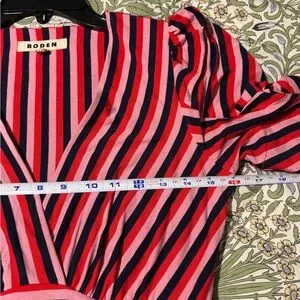 Bought from another posher but a little small. Red, lilac, and navy stripes. New without tags. Measures in photos. Gorgeous summer dress!