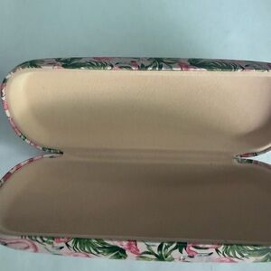 Stylish sunglass case featuring a vibrant flamingo print. The pink and green colors add a tropical flair to your outfit.