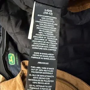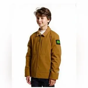 The John Deere boys tractor jacket is a timeless style. This John Deere tractor jacket is John Deere Durable and Tough, crafted in a heavy stretch canvas so it can last long. The quilted lining offers cozy warmth when outdoors for extra comfort no matter where the adventure takes him.