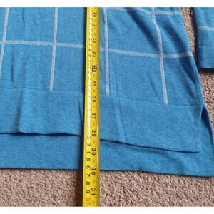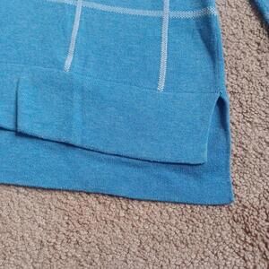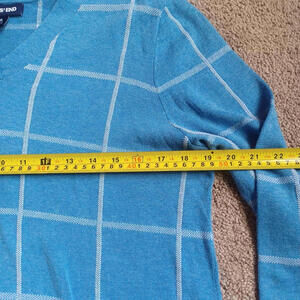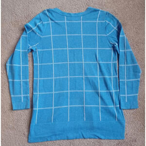 Lands End Plaid Split Hem Sweater Womens M 10-12 V-Neck Blue Nautical Check