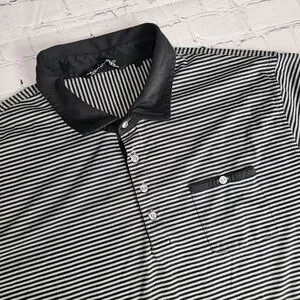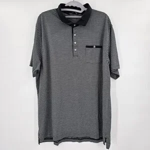 Travis Mathew Mens 2XL XXL Striped Golf Polo Shirt Black Short Sleeve Stretch