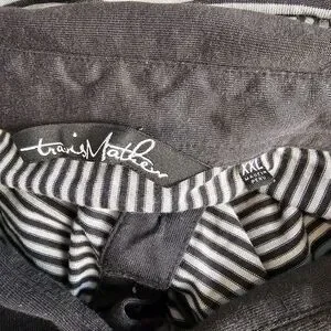 Travis Mathew Mens 2XL XXL Striped Golf Polo Shirt Black Short Sleeve 1/4 Button