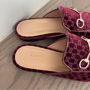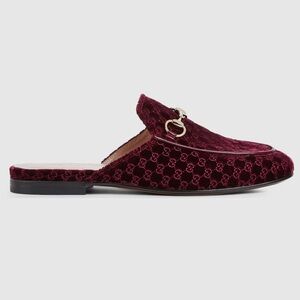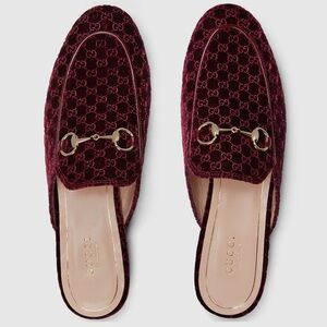 NWOB Gucci Princetown Slippers Mules Loafers in Bordeaux GG Velvet