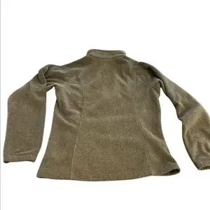 This Columbia fleece jacket is an excellent condition. No peeling no spots no stains zippers work perfectly ! Cinch cord at the waist