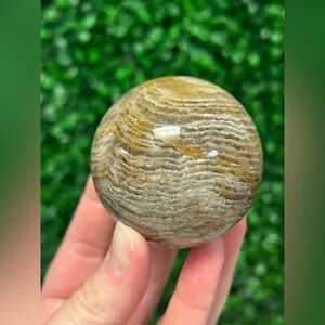 Enhance your space with this elegant natural stone sphere. Its earthy brown and tan hues add a touch of sophistication to any decor.