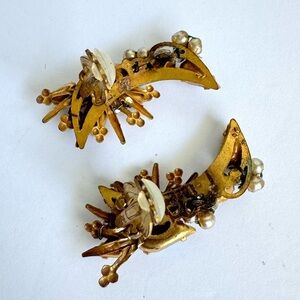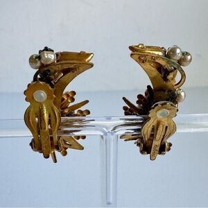 Vintage ROBERT Earrings Clip On Ear Climber Aurora Borealis Crystal Pearl Rhinestone Gold Tone