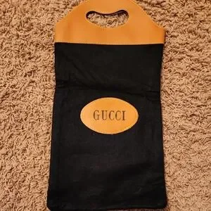 Gucci Vintage Small Black and Brown Wool And Faux Leather Tote/dust Bag