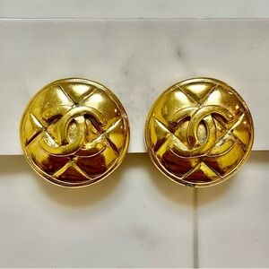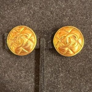 Gold quilted Chanel button earrings