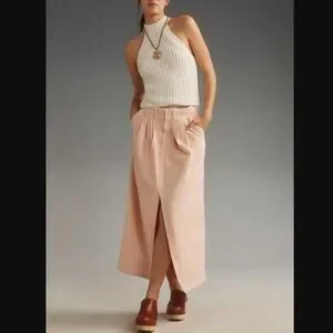 Pilcro Anthropologie Pleated Slouchy Trouser Pink Maxi Skirt Middle Slit Detail