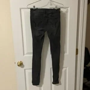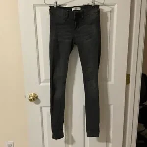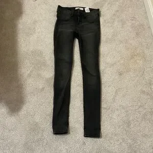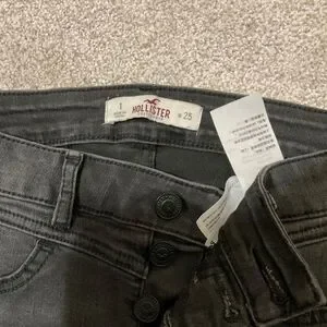 Hollister black super skinny jeans, low rise three button size 1/w 25, trendy, and flattering Hollister, black skinny jeans, stretch denim for a comfy fit. Inseam 29”. 80%cotton, 18% polyester, 2% elastane. Black wash with slight fading. Excellent preowned condition. No holes or major flaws. Perfect every day staple. Smoke-free home. Fast shipping.