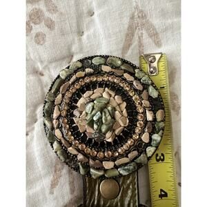 LEATHEROCK Women's Large Pebble Rock Buckle Green Leather Belt Sz L36 Boho