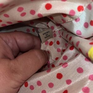 noticeable tiny spots on bag but it’s something that could be cleaned. Small stains inside lining, can be cleaned (see photos).