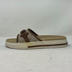 Ralph Lauren Matty Sandals Camel Signature Fabric Beige Women's Size 8B VTG NEW