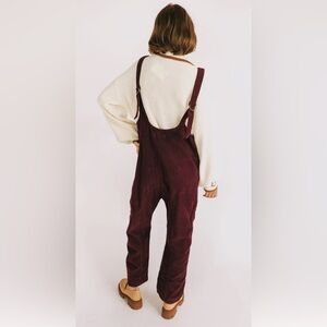 This vibrant red jumpsuit from We The Free features a relaxed fit with a wide-leg silhouette, perfect for a stylish and comfortable look.