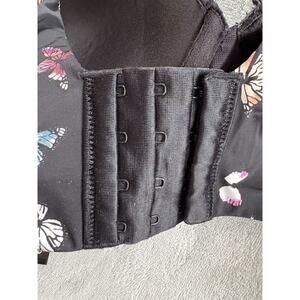 Torrid Bra 44D Boost Plunge Black Colorful Butterfly Padded Cris-Cross Front