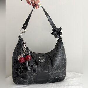 Coach Black Embossed Shoulder Bag with Cherry Charms