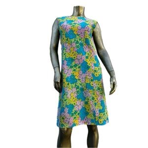 Vintage RAPPI colorful pastel colors floral Sleeveless Sheath Dress 34” bust
