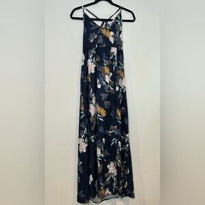 Long Floral Print Maxi Dress Two Tie Low Back Design Size Large