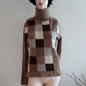 Fisherman Out Of Ireland Lambswool Turtle Neck Sweater. Size States M But Fits More Like A Small Mannequin Is Size 4-6 Colors Are As Shown In Photos. In Very Good Condition. Please Take A Moment To View The Photos And Measurements As They Are An Important Part Of The Description And To Ensure A Proper Fit For You. Measured Flat And Unstretched And Doubled Where Needed For Your Convenience. Remember To Leave Some Room For Comfort. Shoulder To Shoulder; 14" Bust; 34" ( Armpit To Armpit Doubled) Length; 21" ( Excluding 8 1/2 " T-Neck ) Around Bottom; 38" ( Doubled) Shoulder Seam To End Of Sleeve; 26" Armpit To End Of Sleeve; 20"