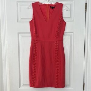 Elegant sleeveless mini dress in Coral. Features intricate side detailing. Ideal for a chic appearance.