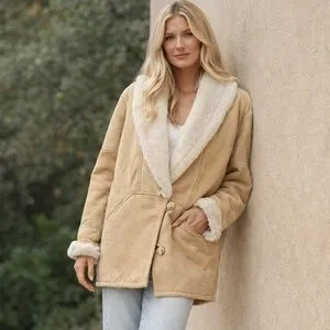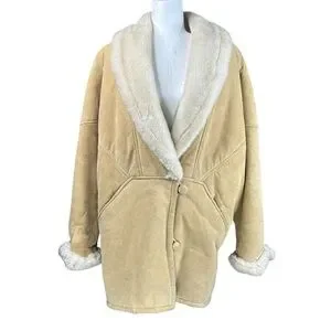 Vintage Leather Penny Lane Style Coat M Faux Fur Boho Daisy Jones Statement