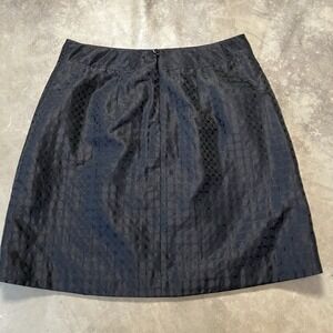 Elevate your wardrobe with the BCBGMaxAzria Shiny Black A-Line Penny Skirt. This stylish piece, in size 10, features a sleek geometric pattern that transitions seamlessly from the boardroom to an evening out. Its double-button accents and zipper closure add a touch of sophistication, while the skirt's short, lined silhouette ensures comfort and versatility for any season. Crafted from a durable blend of acrylic and polyester, this skirt is designed to keep up with your busy lifestyle. It's easy to care for and machine washable, making it a practical addition to your clothing collection. Whether paired with a crisp blouse or a casual tee, this skirt is sure to be a go-to in your everyday ensemble.