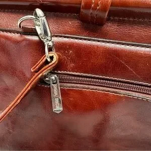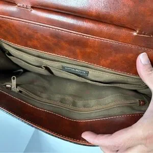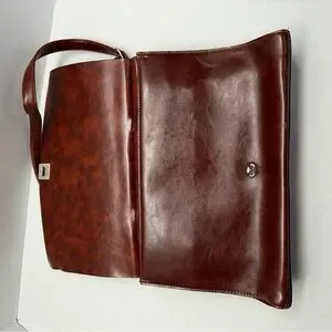 Vtg RinaRich Brown Leather Structured Satchel Handbag Top Handle Crossbody Purse