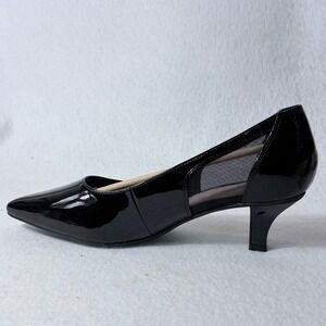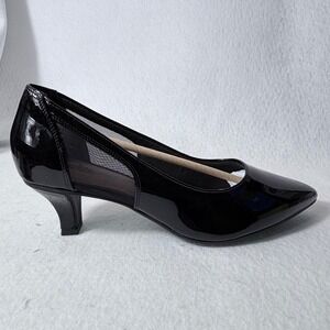 Clarks Kepley Cora Black Patent Mesh Kitten Heel Pumps Womens 9 Wide 26184255