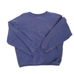 • FLAW: There are some bleach splatter spots on the back of the left sleeve (shown in the last photo). It blends well with the faded "distressed" look of the piece but is priced accordingly!