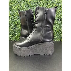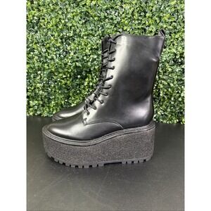 Circus NY by Sam Edelman Slater Black Faux Leather Combat Lace Up Boots Size 7.5