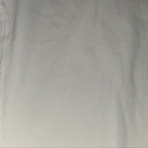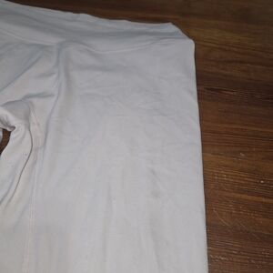 NOTE: the entire set has a slightly blue tint, probably from the wash, so the color is no longer bright pink. There is some discoloration on the front of one thigh on the leggings, the calf of the leggings, and the back of the shrug. There are also pulls in the fabric on both the leggings and shrug. I tried to capture flaws as much as possible.
