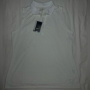 Nike Golf Polo NWT Tour Performance Dri-FIT Sleeveless White Striped Large