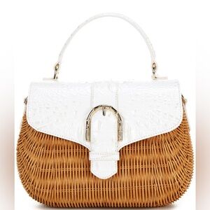 Brahmin Hanalei Collection Maisie Straw Buckle Satchel Bag - Sea Salt White