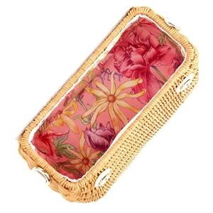 Maisie is a smaller satchel featuring a structured silhouette in a vintage-inspired wicker that feels both uniquely fresh and adorably retro. The colorful custom lining is our own artwork in an expressive print that adds personality to the style. The magnetic snap closure and double up crossbody strap allow you to carry your essentials with ease.