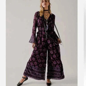 NWOT FP x Anna Sui Cassiel Printed Jumpsuit Black Combo XS
