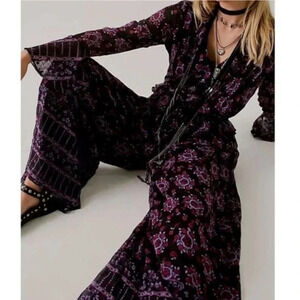 Free People x Anna Sui Cassiel Printed Jumpsuit Black Combo XS