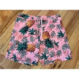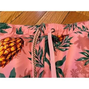 Surf Society men’s swim trunks/board shorts, size XL. Pink with pineapple and palm tree design. Mint condition, looks like they’ve never been worn. No rips, holes or stains. Please see photos for item details/dimensions. Some photos may appear different in color due to lighting. Ships from smoke-free home.