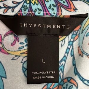 Investments Womens Blue Yellow Pink Paisley Blouse Ruffle Size Large