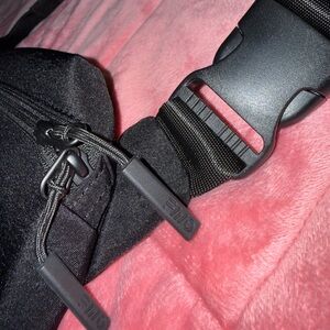 •Sleek and versatile black sling bag perfect for everyday use. Can be used as a sling bag, or a waist fanny pack.