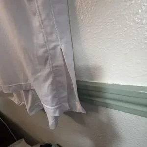 Features: Elbow-length sleeves, crew neck, side slits for movement