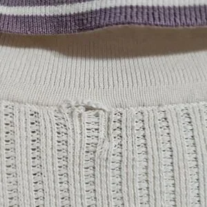 Color: Cream with purple stripe trim