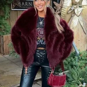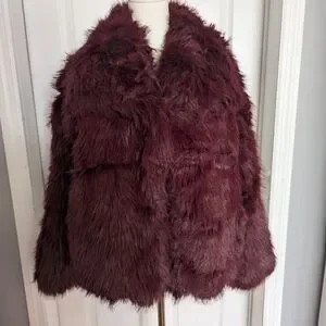 Women's Burgundy Faux Fur Jacket - Size XL